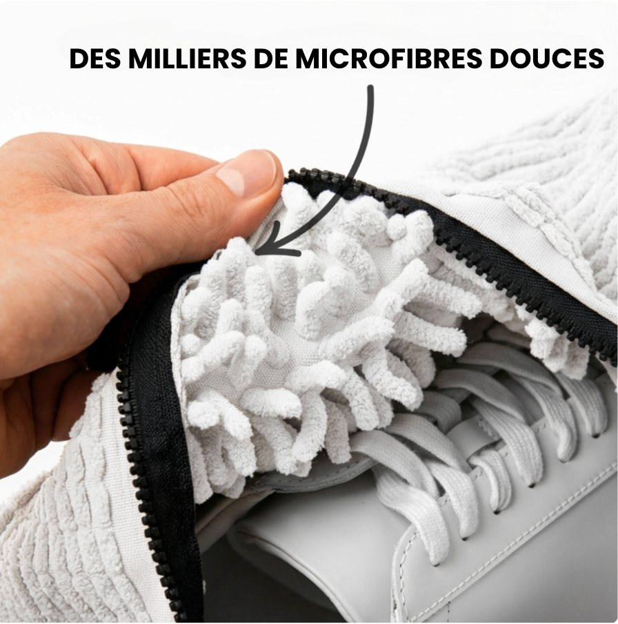 À l’intérieur, des milliers de fibres ultra-douces agissent comme de micro-brosses pour éliminer la saleté en profondeur, tout en protégeant vos chaussures et votre lave-linge.