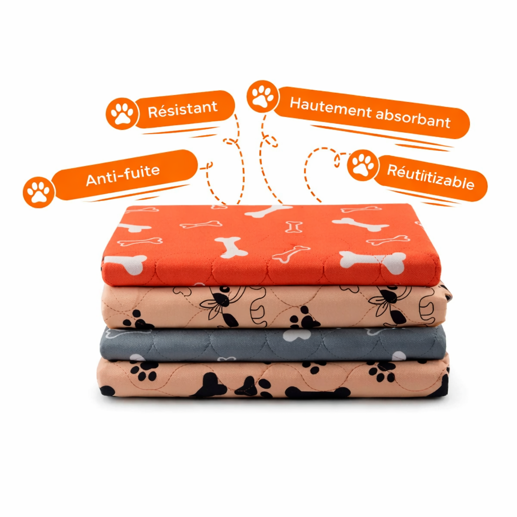✓ Protection à 4 couches contre les fuites : il absorbe jusqu'à 10 fois plus que les tapis jetables. Aucun liquide n'atteint jamais le sol. Jamais.